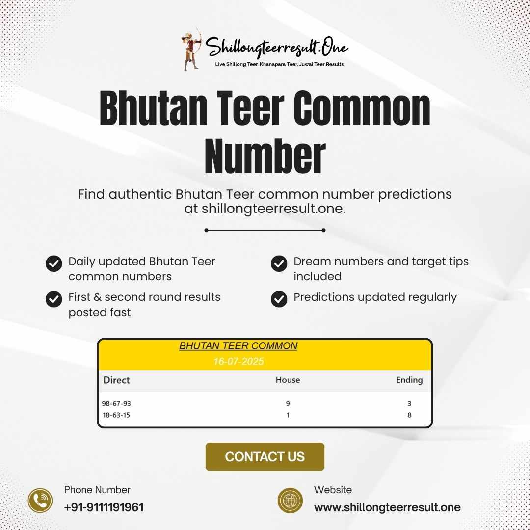 Find authentic Bhutan Teer common number predictions at shillongteerresult.one. We offer free daily updates with high-accuracy hit numbers that increase your winning chances. Whether you're new to Teer or a seasoned player, our smart number prediction and result tracking make us your perfect partner.